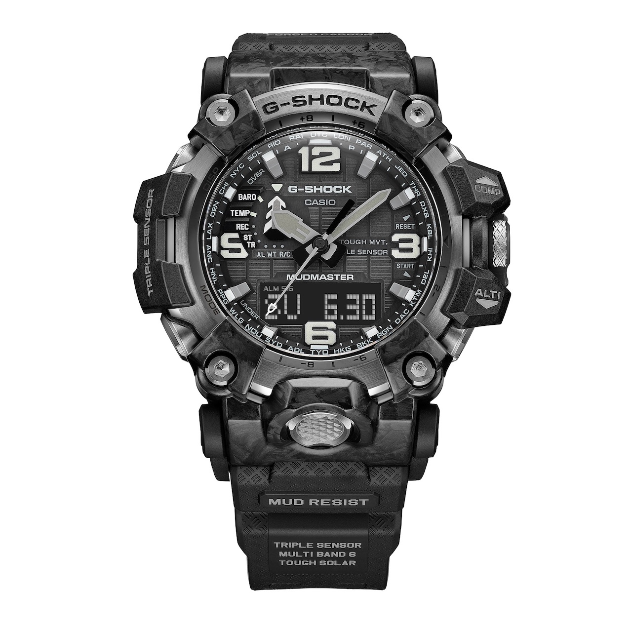 This new G-SHOCK MUDMASTER GWG-2000 is the latest addition to the MUDMASTER series of watches, these watches have a dust and mud resistant structure of use in land environments with lots of dirt, sand, mud, dust or rubble. This is also a first for the G-SHOCK watch, the new GWG-2000 employs forged carbon, a material that is used in aircraft and racing cars.