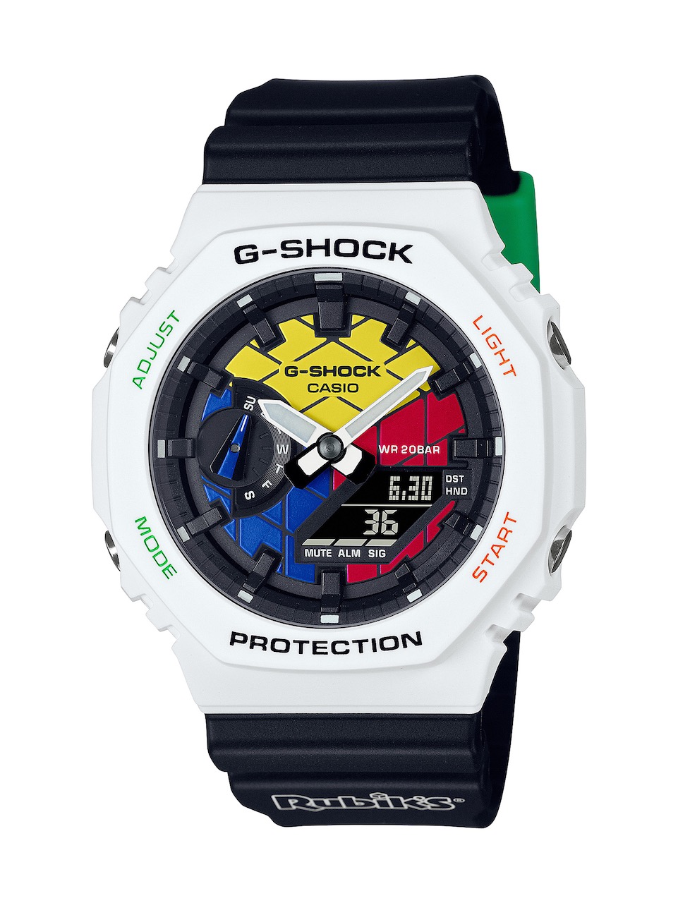 G-SHOCK x Rubik’s Cube recently announced the launch of a limited edition collaborative timepiece, the GAE-2100RC-1A. This limited edition collaborative timepiece is based on the best-selling GA-2100 model. Just like the Rubik’s Cube® inspiration, a facelift is just a turn away, with each watch featuring an interchangeable bezel and tool.