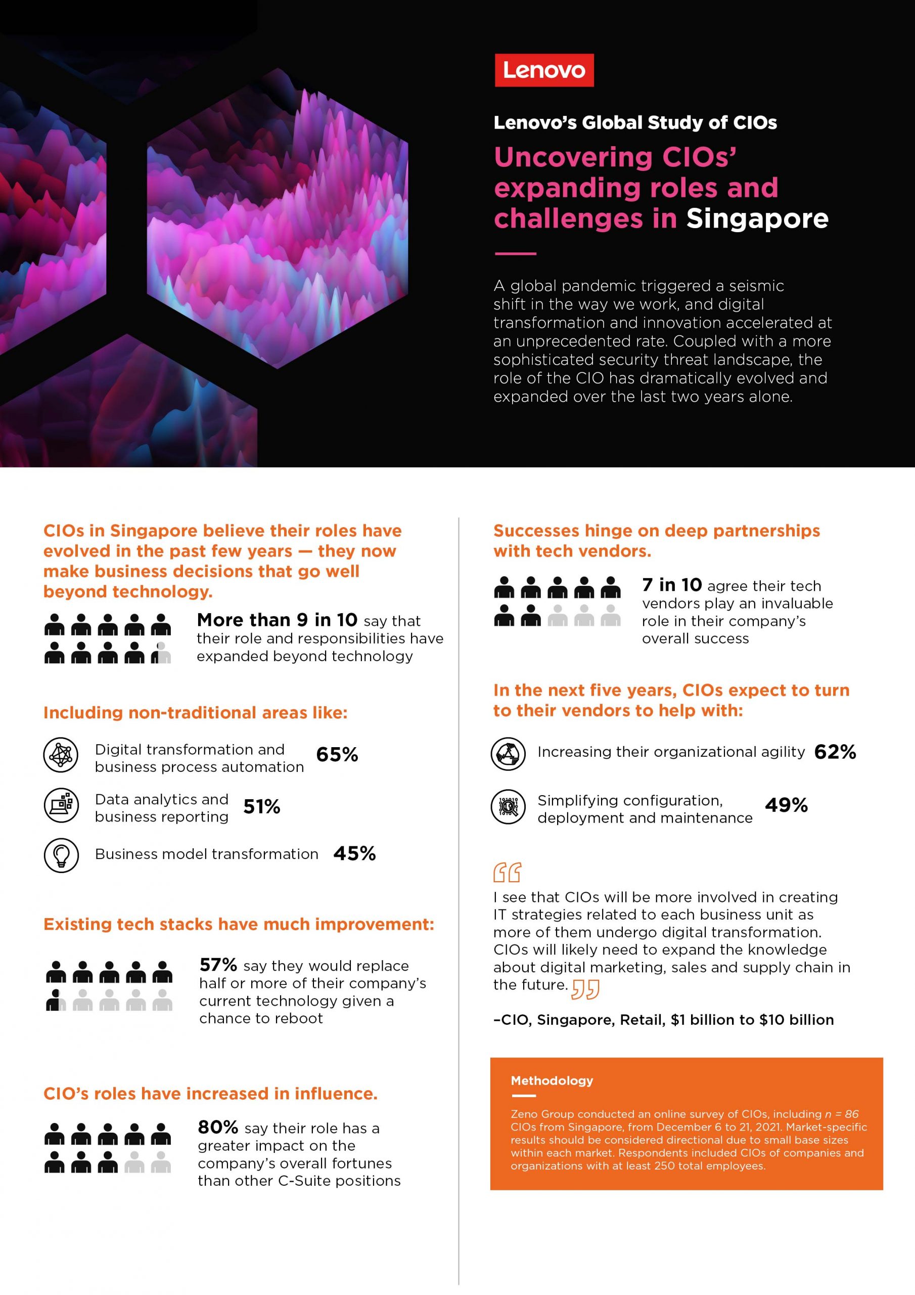 In the context of Singapore, what are the key findings from Lenovo’s study with the CIOs in Singapore? Here are key findings from Lenovo’s CIO survey in Singapore: