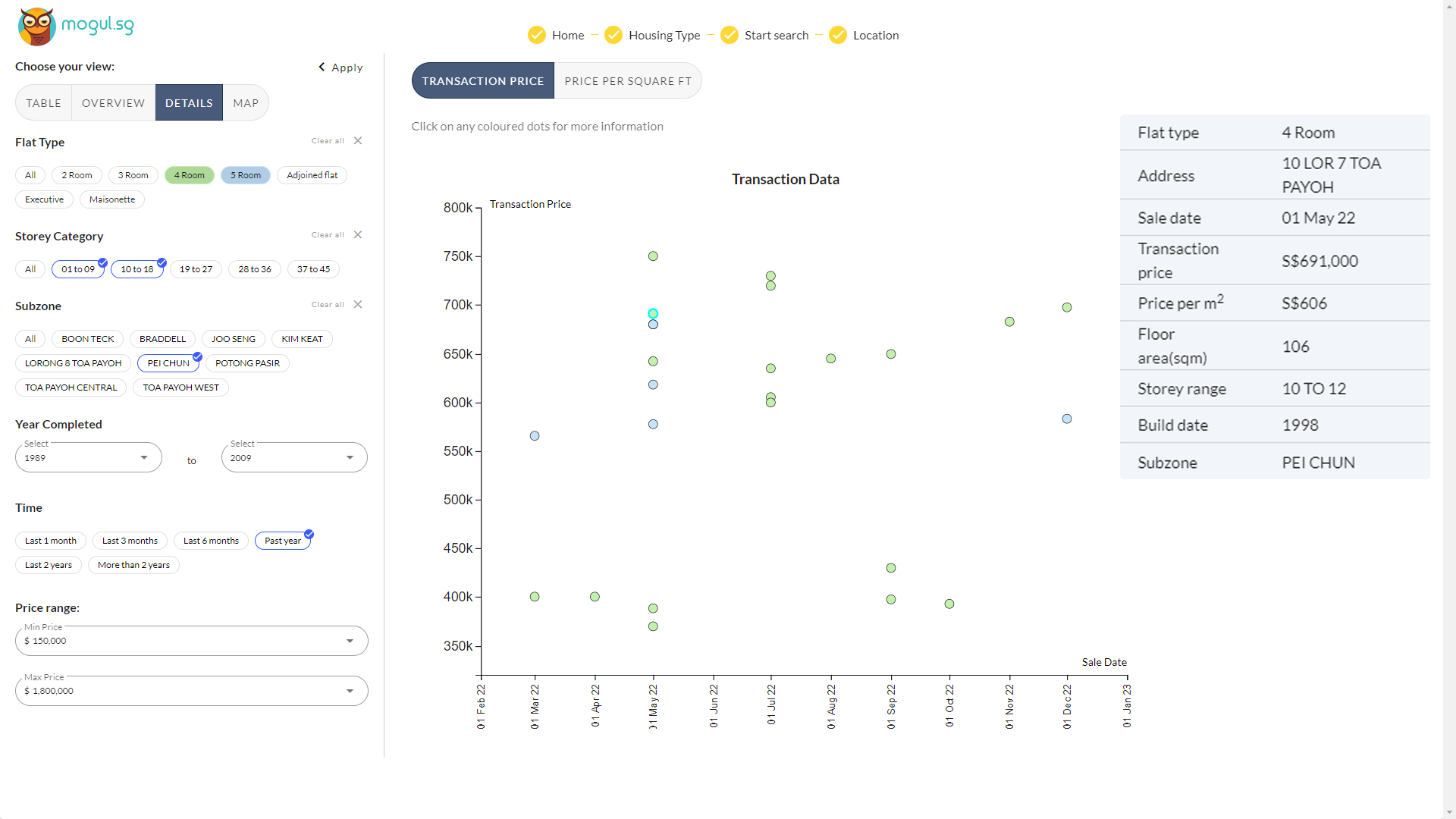 MOGUL’s DataSuite is a one-stop search solution designed for home buyers, sellers and property agents. Powered by geospatial data, MOGUL’s DataSuite aggregates past property transactions to provide in-depth search results. As such, DataSuite empowers users to draw insights to the transacted values. With interactive filters and dynamic data visualisation, MOGUL’s DataSuite is accessible, user-focused and most importantly, totally free to use.