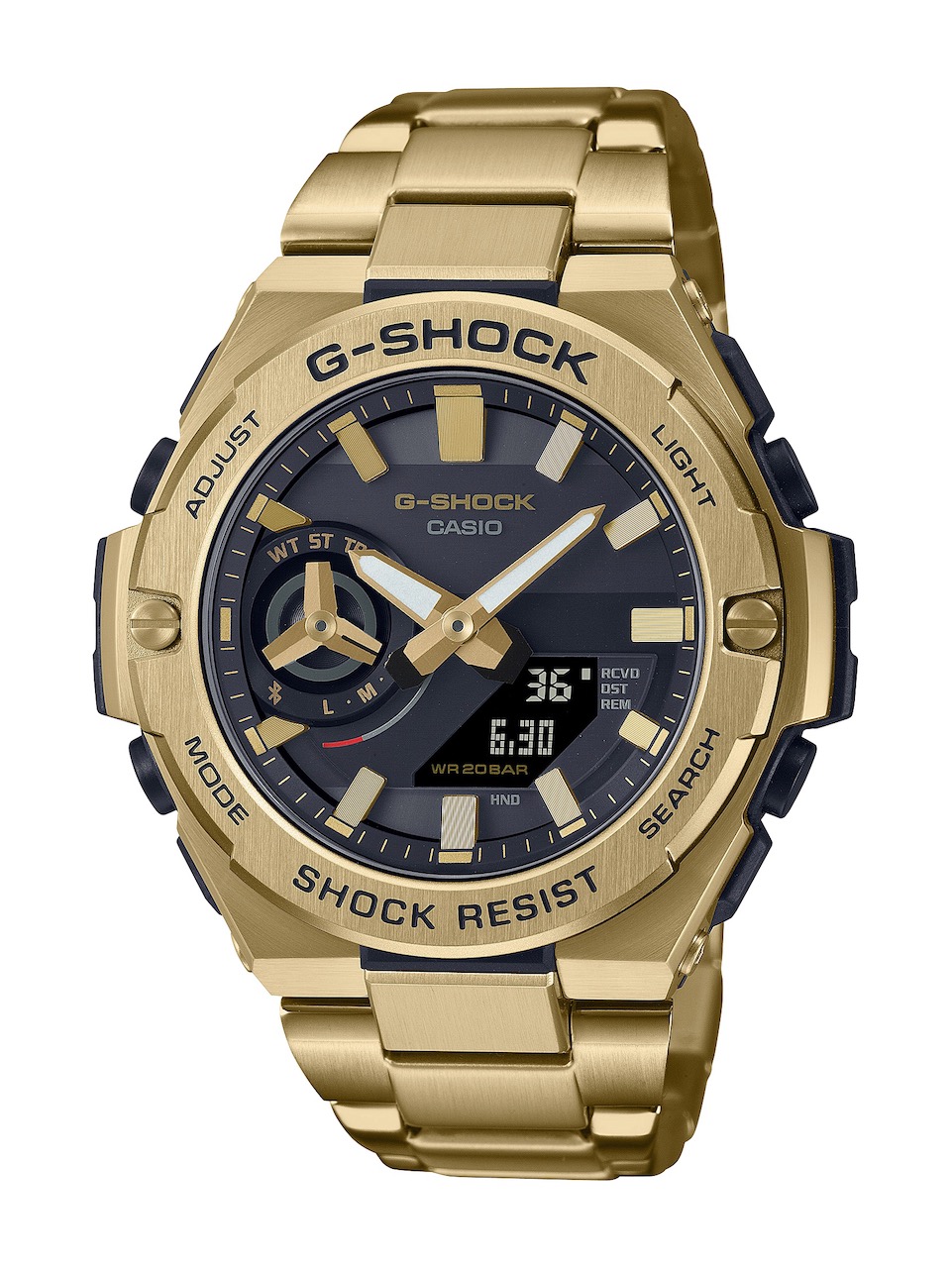 These sophisticated G-SHOCK GST-B500 designs go well with a variety of different fashion and styles. The bezel’s surfaces have different finishes, which creates an elegant effect and changes the appearance of the texture of the metal depending on the viewing angle. There are a few different colour designs, three silver colours, one black colour, and one gold colour.