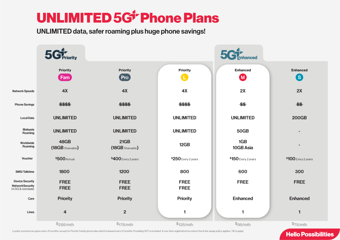 Singtel’s 5G+ Priority Plans are its top-tier plans that offer 4x speeds, a dedicated express lane on the cellular network through cutting-edge “network slicing” technology and a real-time, always-on security solution called Mobile Protect.