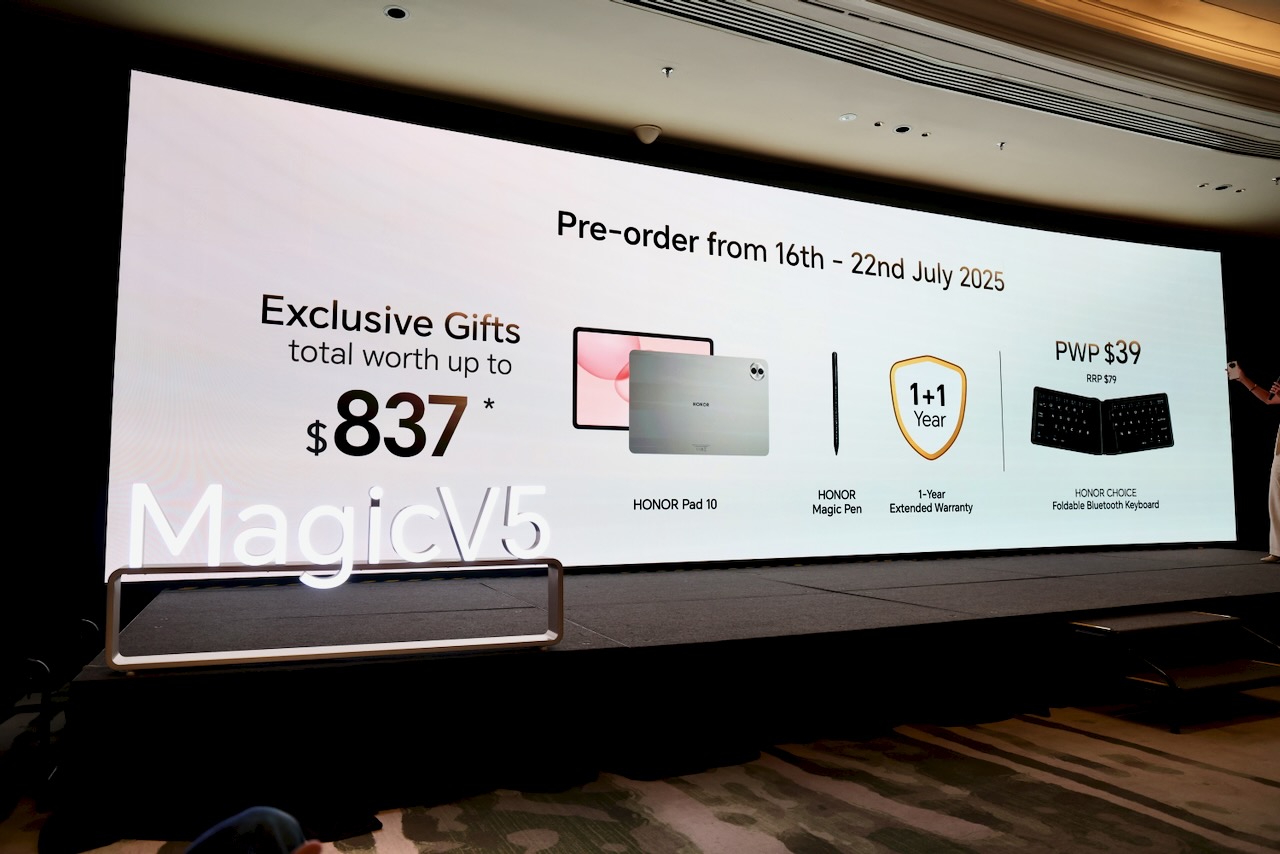 Customers in Singapore are one of the first markets to receive the HONOR Magic V5, they will also be the first to enjoy this exclusive launch bundle. Pre-Order by 22nd July to receive up to $837 (available on a first come, first served basis while stocks last) in premium gifts – including HONOR Pad 10, HONOR Magic Pen, and 1-Year Extended Warranty.