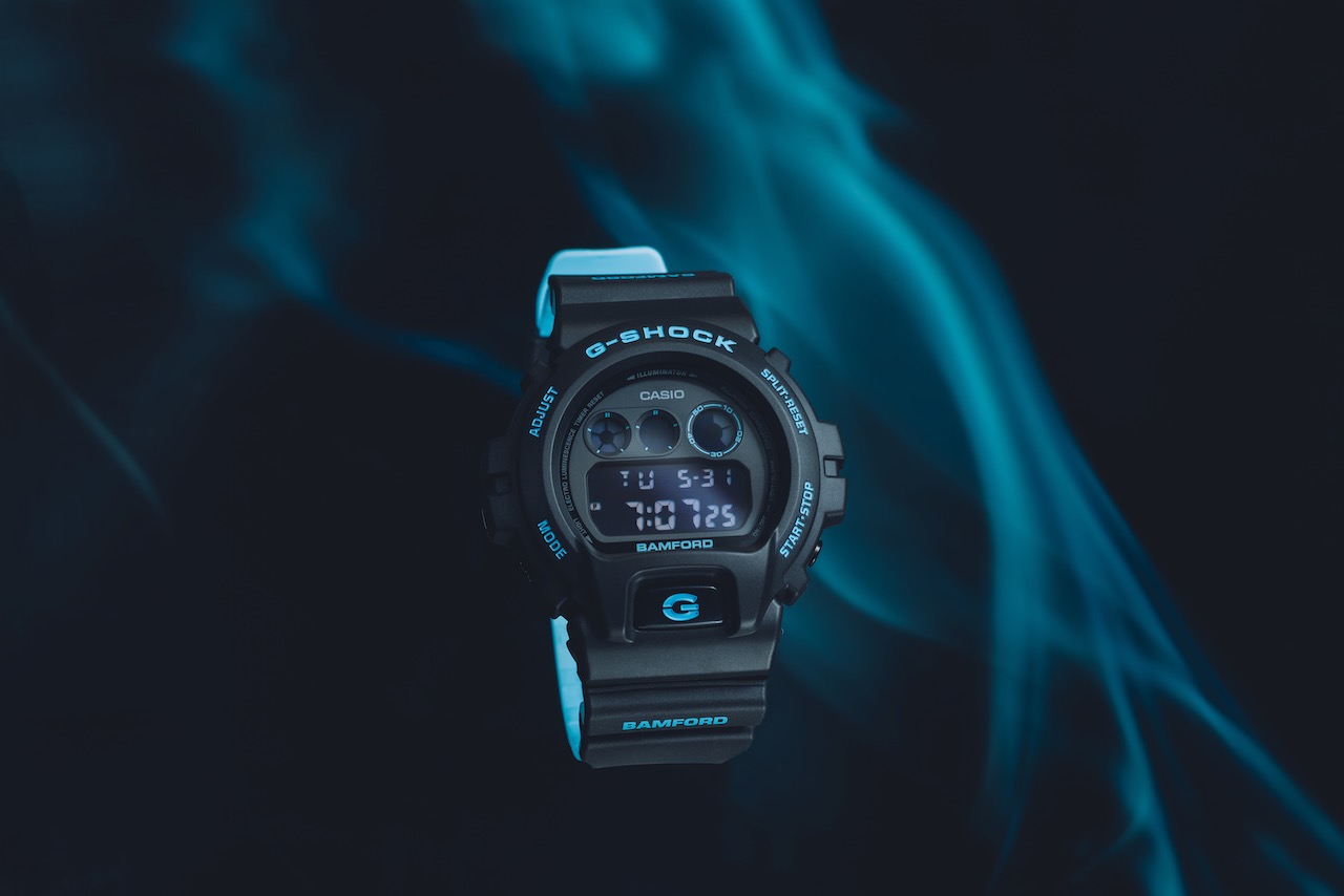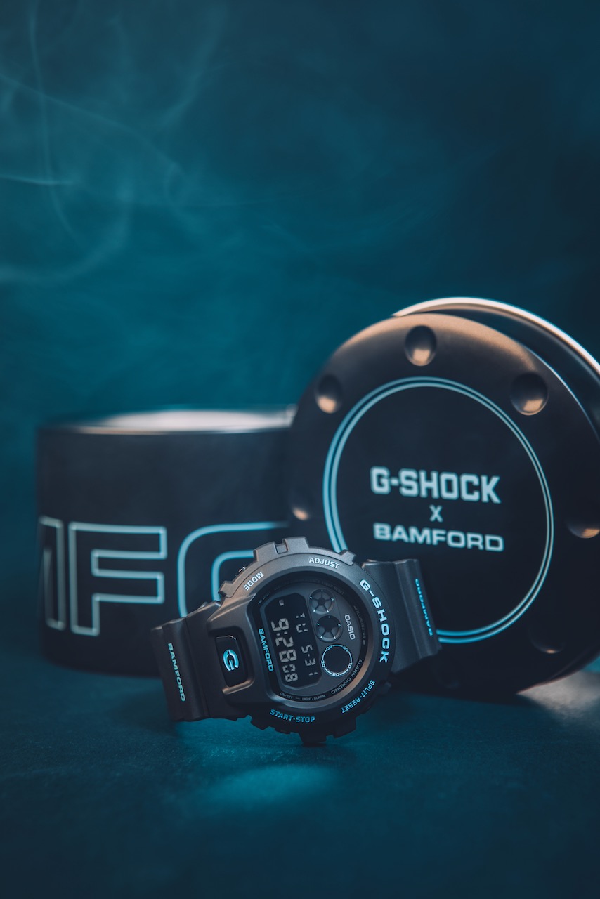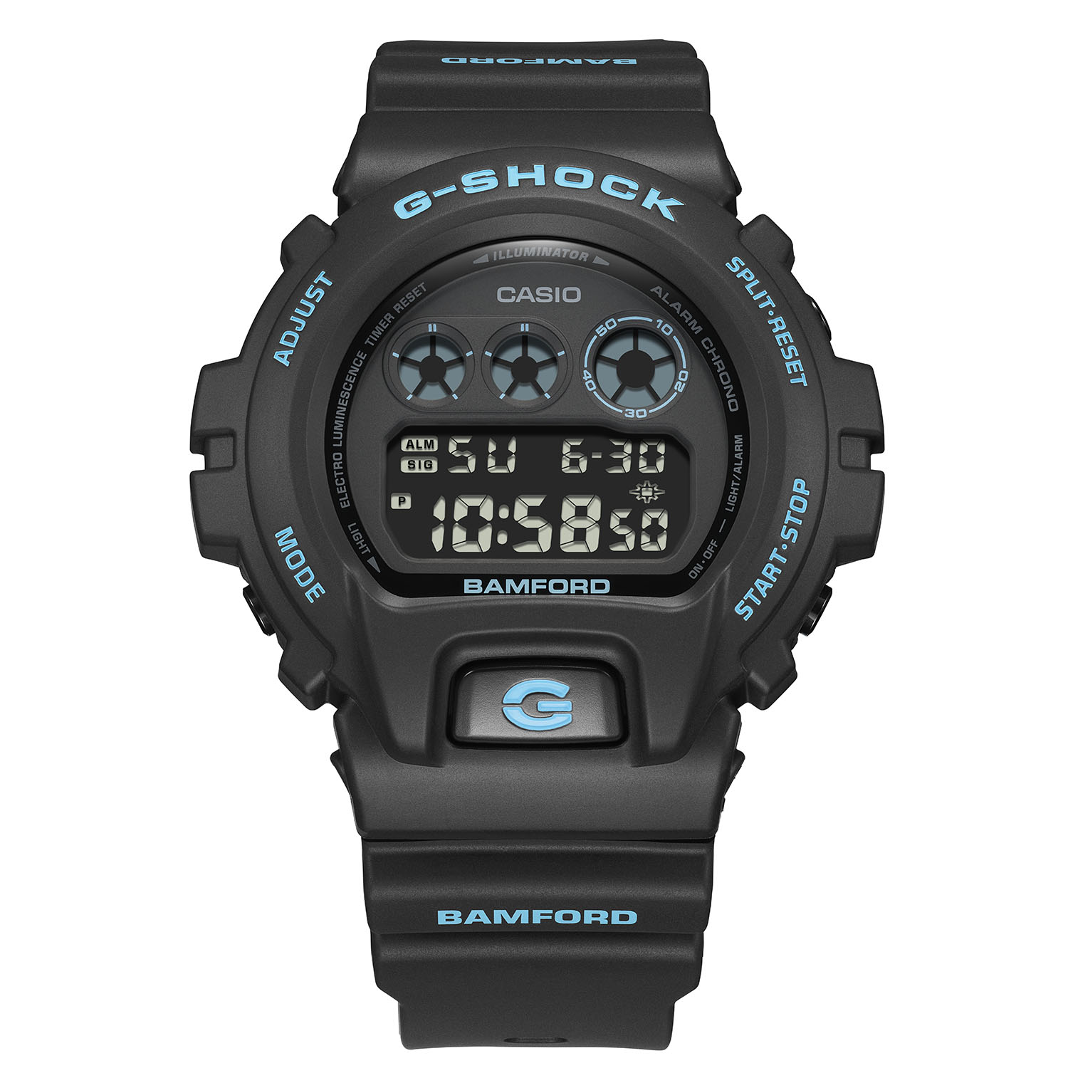 G-SHOCK and Bamford London unveiled the new collaborative timepiece, the unmistakable Bamford blue accented DW-6900BWD-1. This is the second watch to emerge from a union bringing together two of the biggest names in the watch industry.