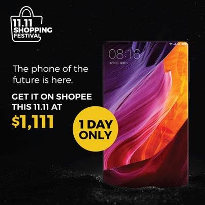 For one day only, today on 11.11, Xiaomi Mix at $1,111 on Shopee!