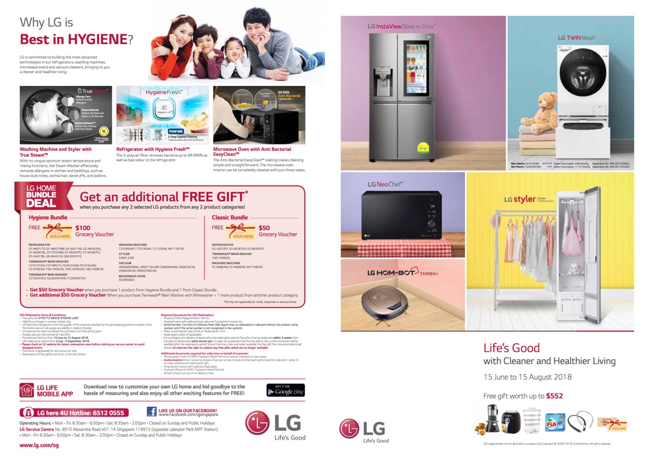 Purchase any two selected LG products in the hygiene bundle from any two product categories to receive S$100 grocery voucher.