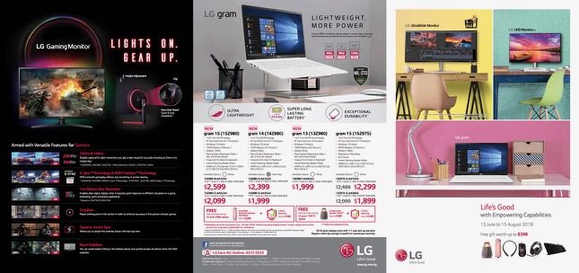 Purchase selected monitors (gaming, UltraWide & UHD) and receive free gifts worth up to S$249, including Thermaltake Premium X1 RGB keyboard, Logitech G610 Orion gaming keyboard, IRIS Optical gaming mouse, Plantronics RIG 500HS gaming headset, LG Tone Plus headset, Sound360 Bluetooth speaker and more.