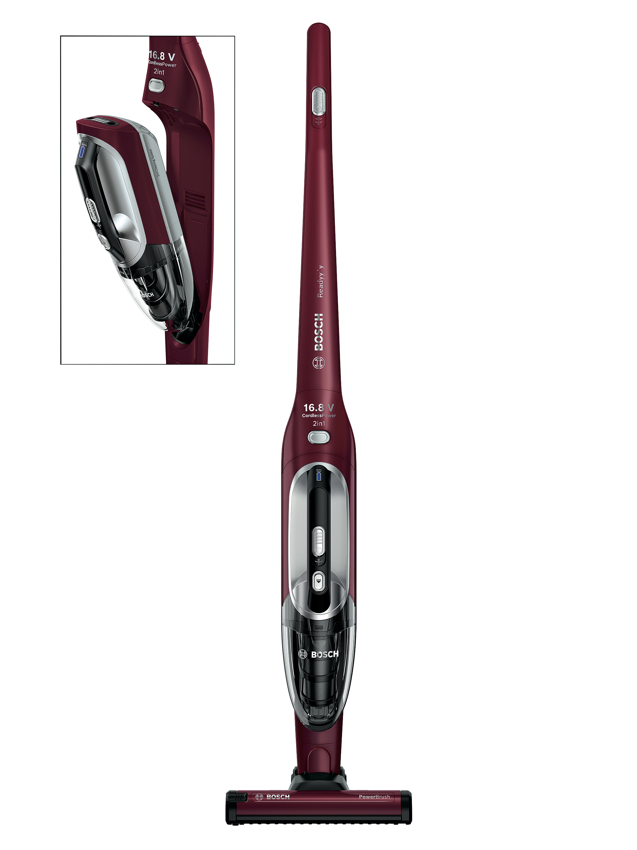 The latest Bosch Readyy’y 2in1 Vacuum Cleaner guarantees maximum flexibility by combining a cordless handstick vacuum cleaner and a detachable handheld cleaner into one. It provides cordless vacuuming without limitations around and under furniture – thanks to its extremely mobile nozzle joint.